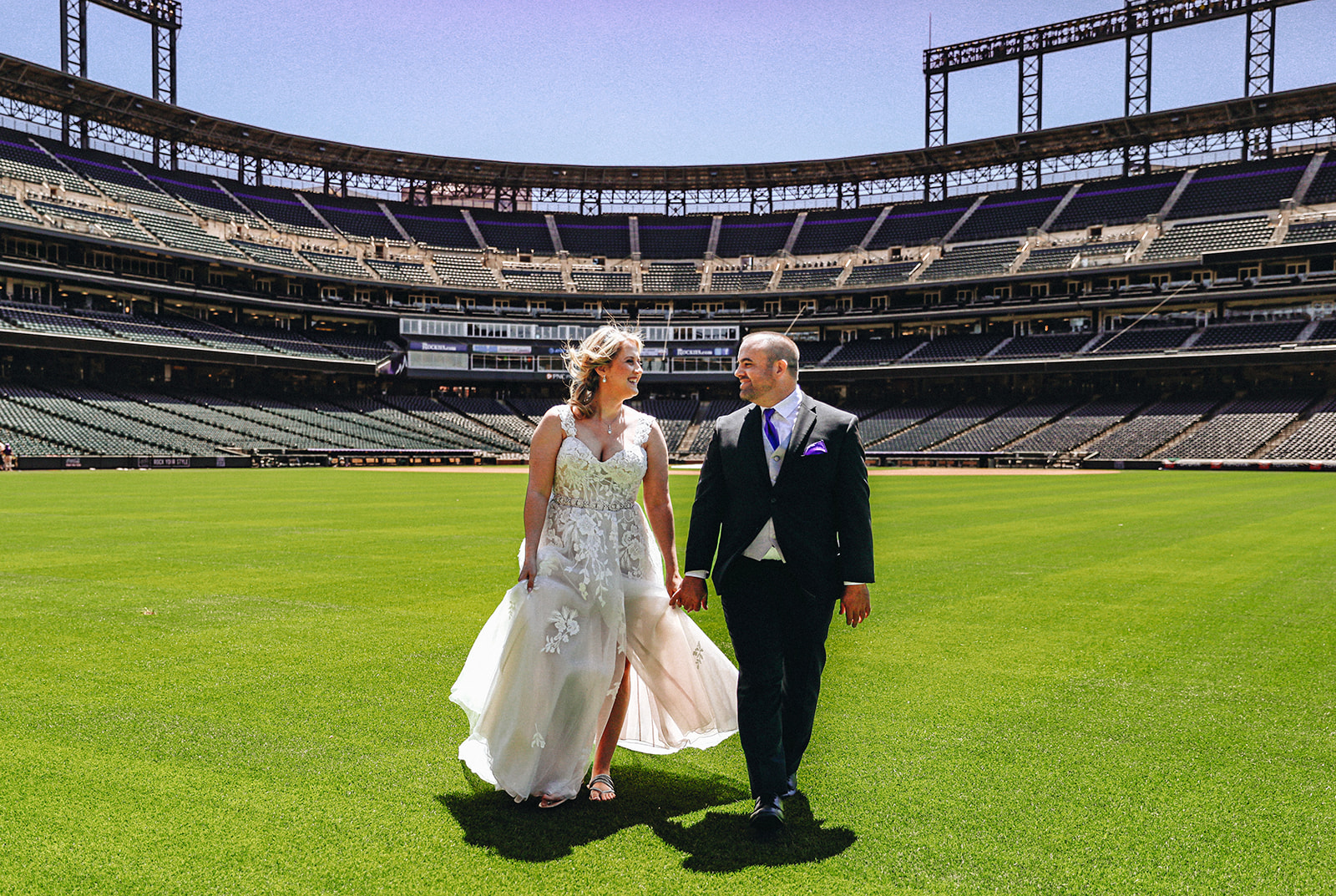 Ivory Events couple Kasey and Eric, longtime Colorado Rockies fans, decided to share their love and devout love of baseball at Coors Field. With our dedicated planning team, their unique and memorable home plate ceremony came to life with customized and meaningful baseball details. Your guests and baseball fans of all ages can also enjoy all of the amenities of the ballpark at Coors Field while the home team is away. With an experienced and unparalleled culinary staff and a unique array of private event spaces, Coors Field can be a refreshing and uniquely local Colorado couple favorite.