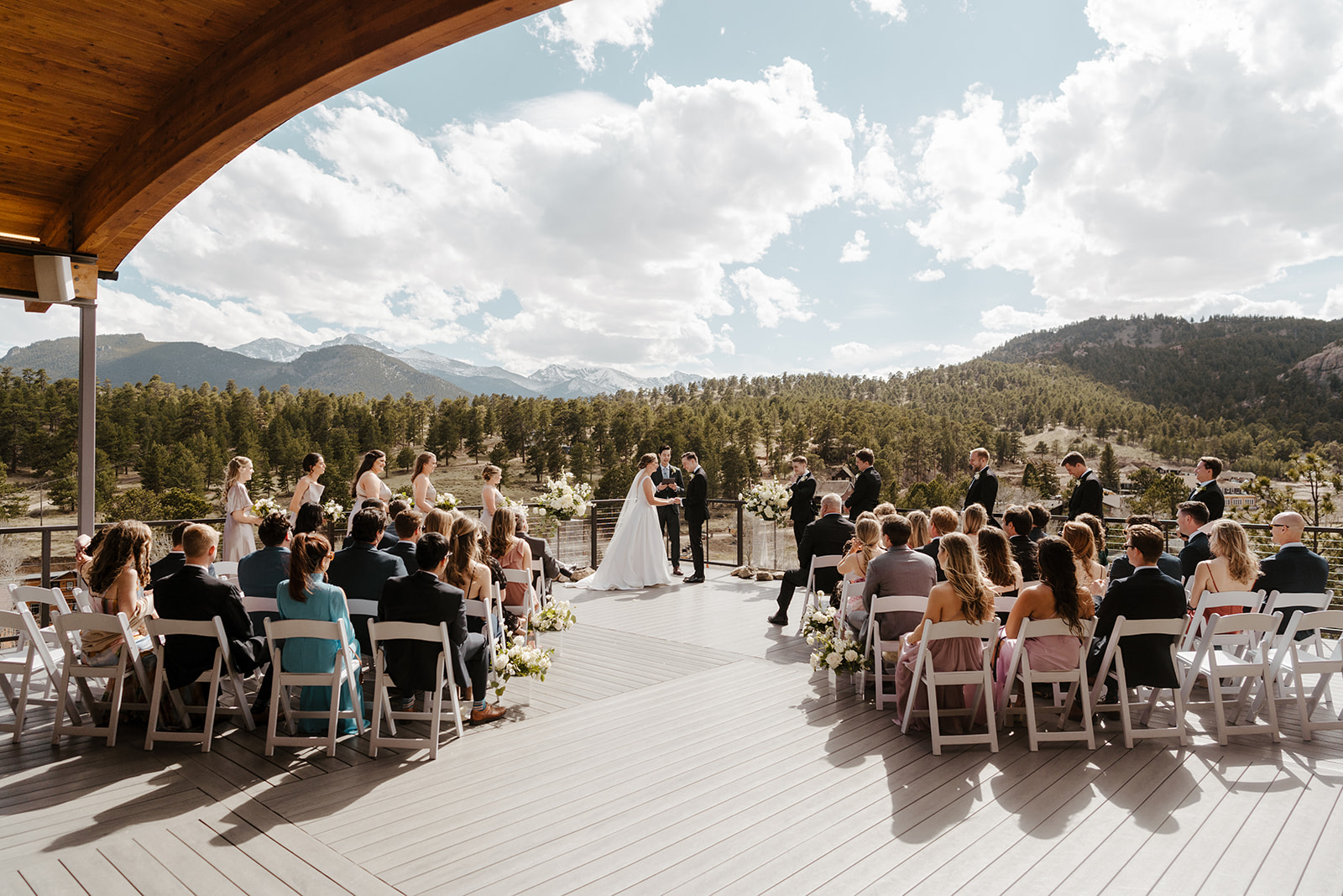 With an open-air roof canopy, Skyview at Fall River Village Wedding and Event Center allows guests to enjoy the outdoor space in all seasons, and in all potentially inclement weather conditions. A rooftop ceremony is also available for ceremonies, allowing guests to take in all 360 degree views of the Rocky Mountains.